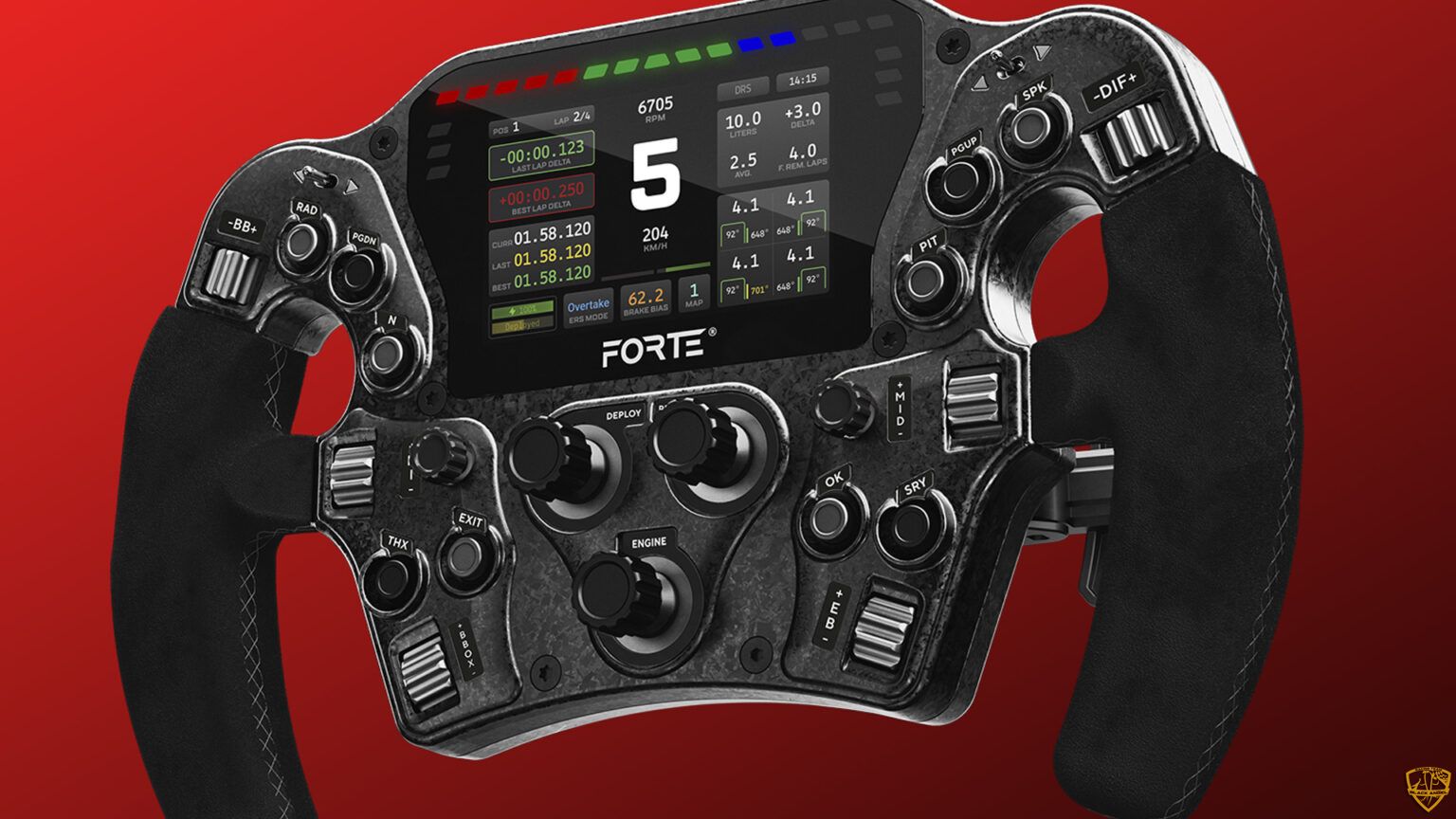 The Forte Formula Pro was designed with careful attention to ergonomics and realism. The shape of the wheel is directly inspired by Formula car wheels, offering a comfortable and secure grip. The materials used are of high quality, with grips in genuine leather or Alcantara (depending on the version) that guarantee a premium feel and optimal grip even during the most intense driving sessions.