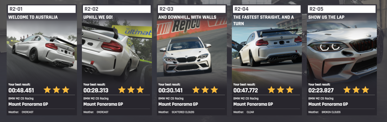 The Racing 2 License takes you to the legendary Mount Panorama, an Australian track famous for its steep climbs, sharp descents, and walls flanking the circuit.